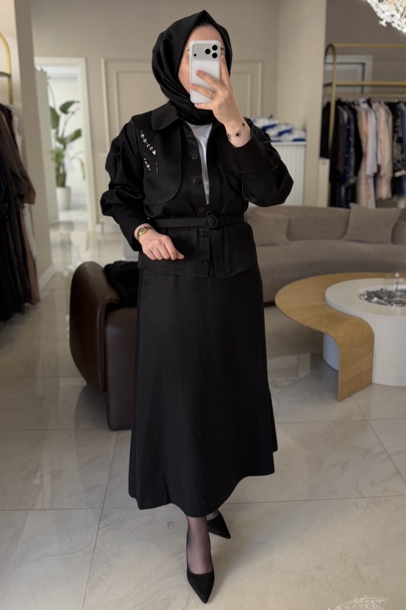 Nuss Siyah İşlemeli Kemerli Etekli Takım 1044