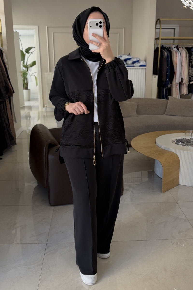 Nuss Siyah Jakar Kumaş Detaylı Takım 1048