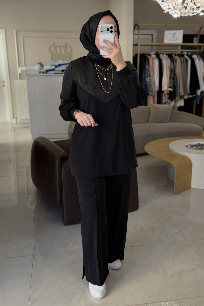 Nuss Siyah Jakar Ve Modal Mixli 1045 Takım