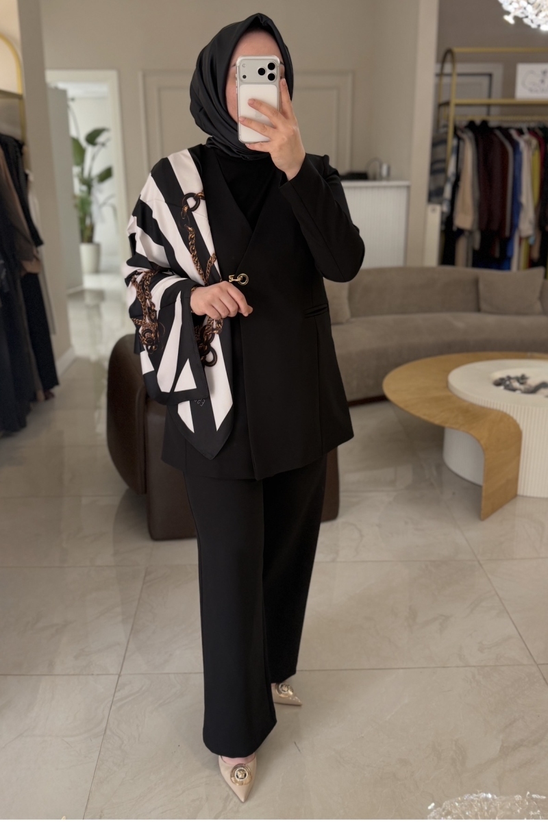 Esswaap Siyah Kilit Detaylı Eşarplı Takım