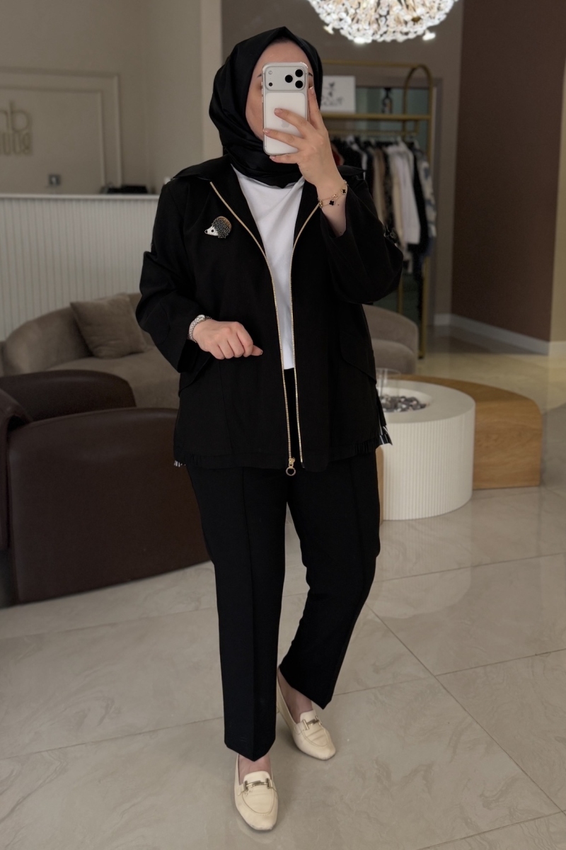 Ghisa Siyah Kirpi Aksesuar Detaylı Ceket