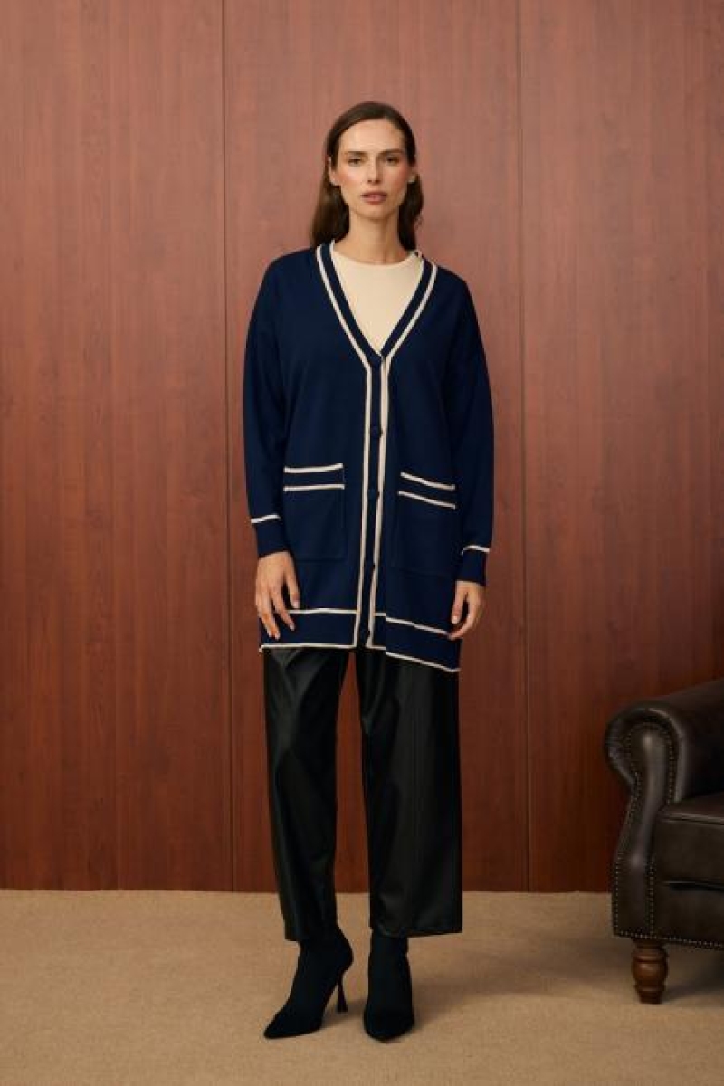 Kahverengi Angora Şerit Taş Detay Hırka 7010
