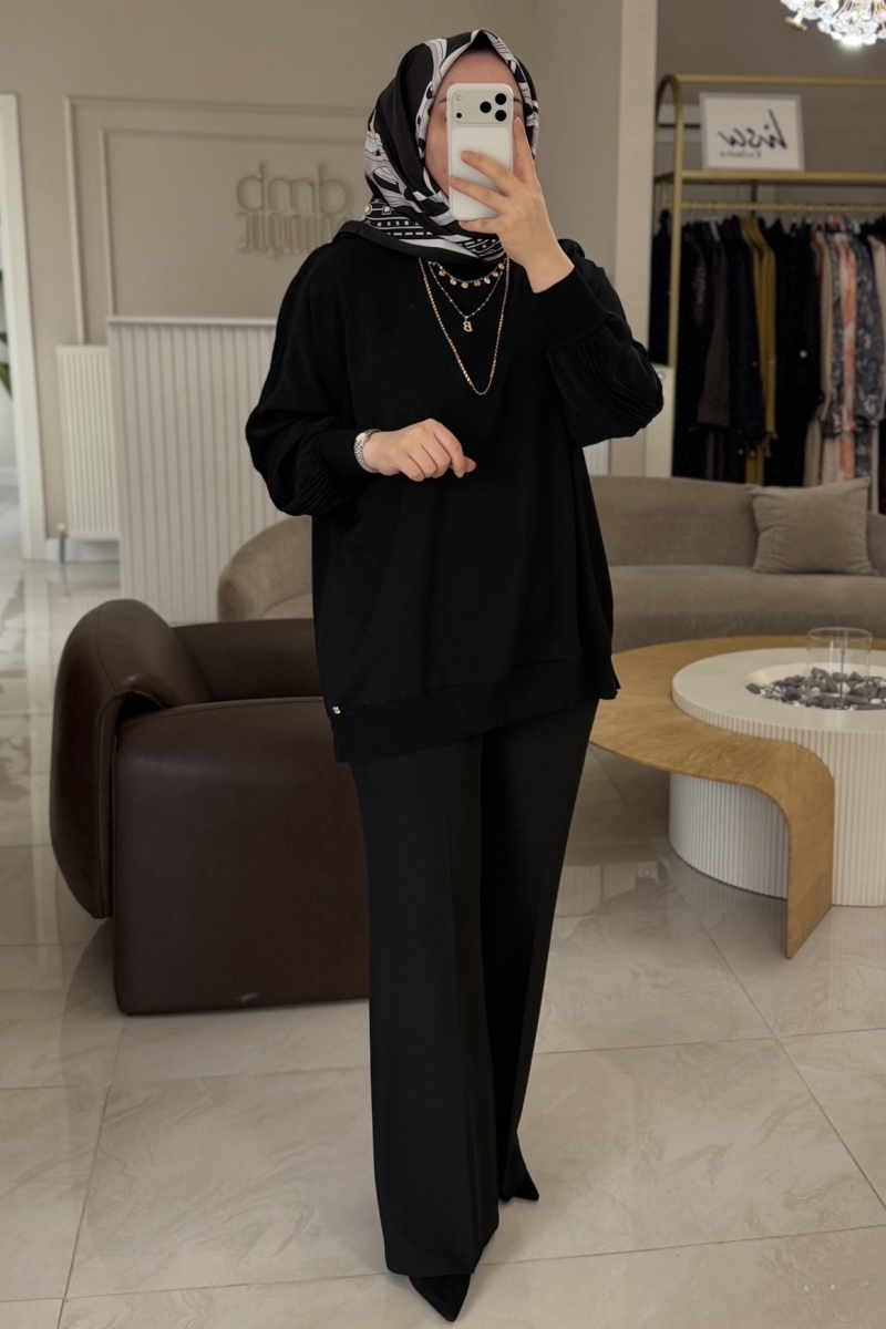 Siyah Kolu Nervürlü Tunik