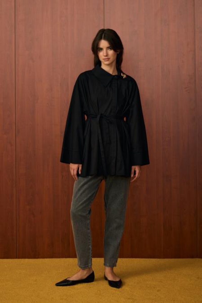 Siyah Kolu Tüy Detaylı Önü Pullu Gömlek
