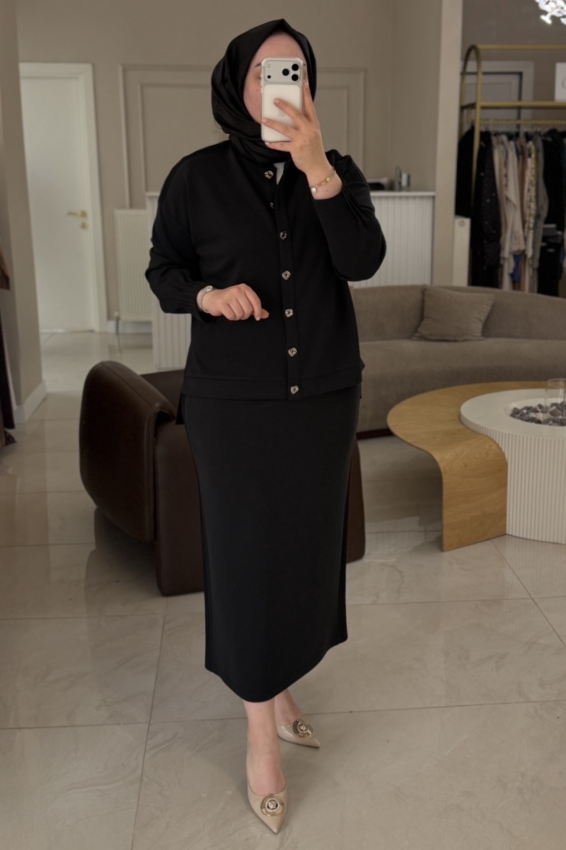 Siyah Taş İşleme Detaylı Etekli Takım 1050