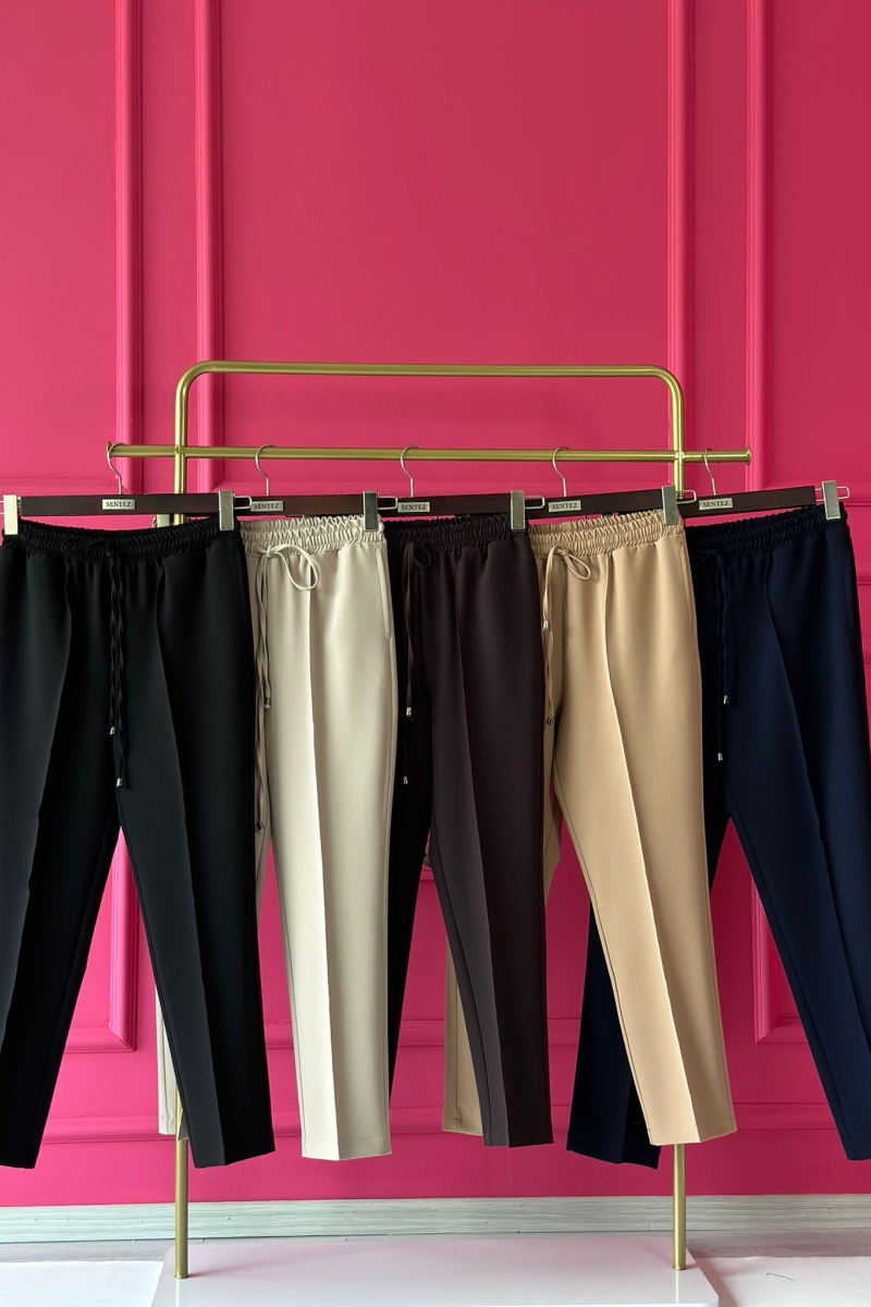 Sentez Grup Siyah Nervürlü Beli Lastikli Pantolon