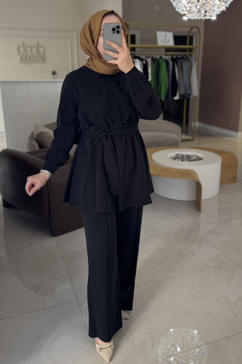 Siyah Pullu Ve Taş İşlemeli Takım 1031