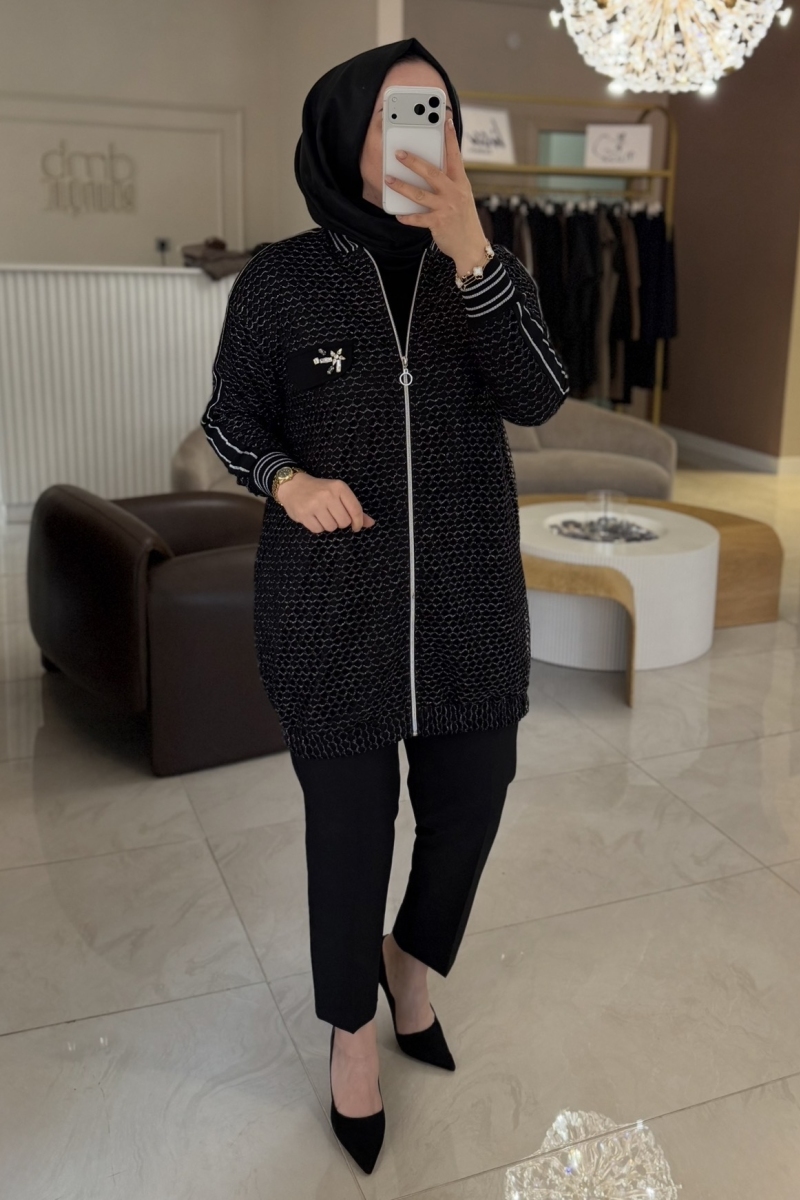 Siyah Taş İşlemeli Çıt Uzun Kap 6012