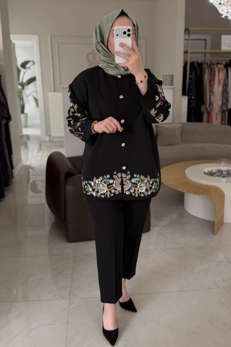 Ghisa Siyah Siyah Premium Süs Detay Ceket