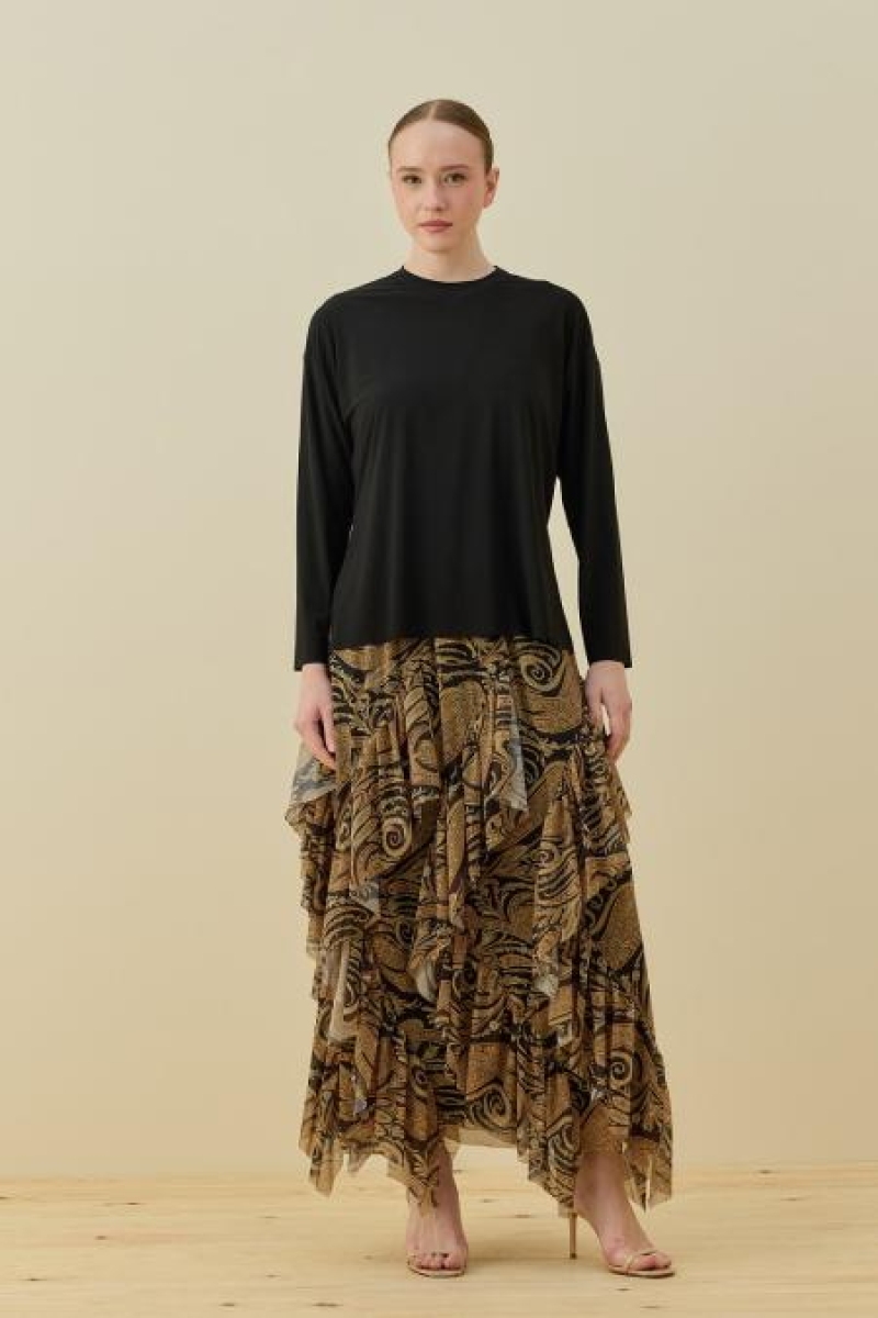 Siyah Gold Detaylı Etekli Takım