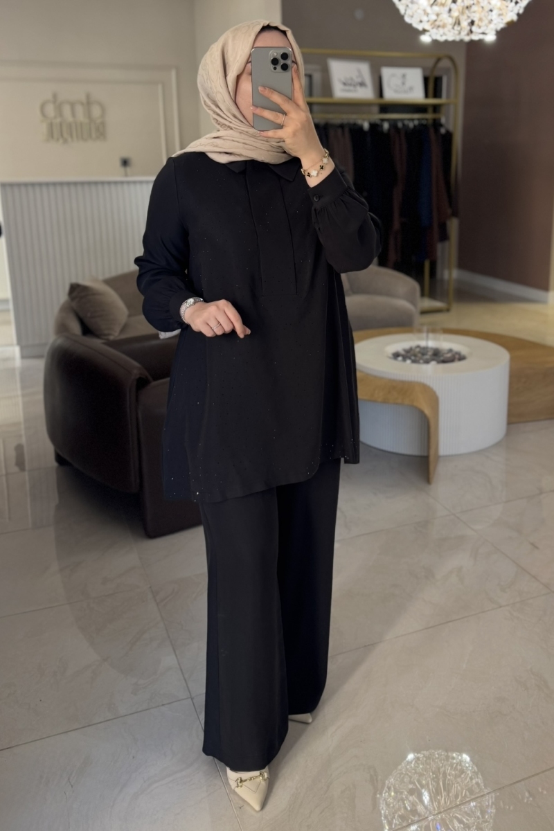 Nuss Siyah Taşlı Pantolonlu Takım 1019