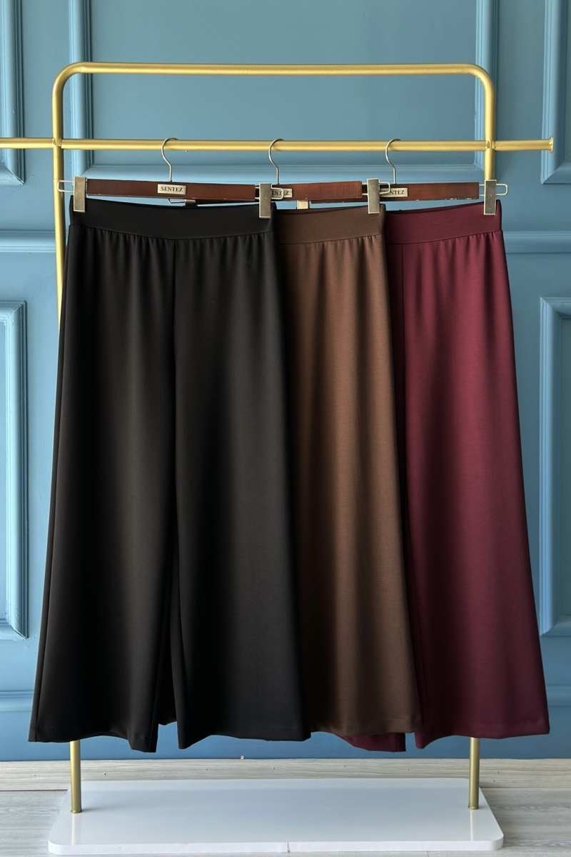Kahverengi Venedik Beli Lastikli Geniş Paça
