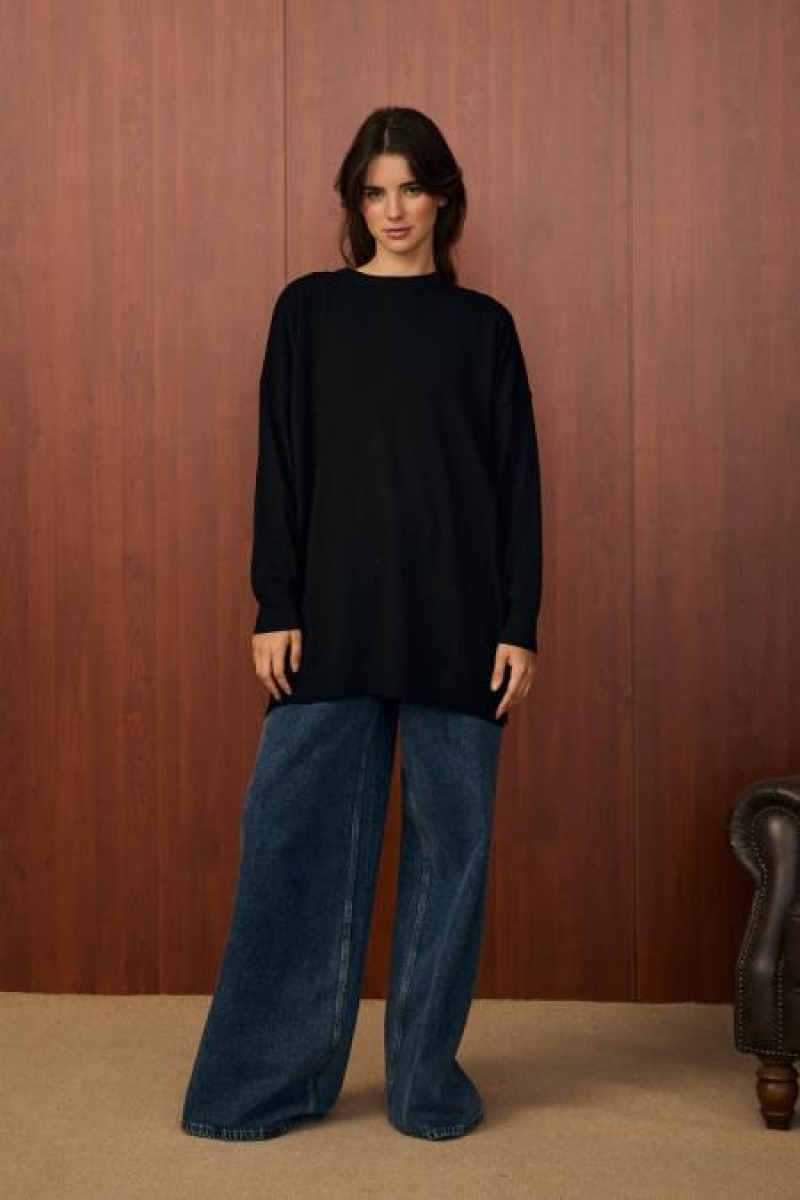 Siyah Süet Ve Merserize Detaylı 3004 Tunik