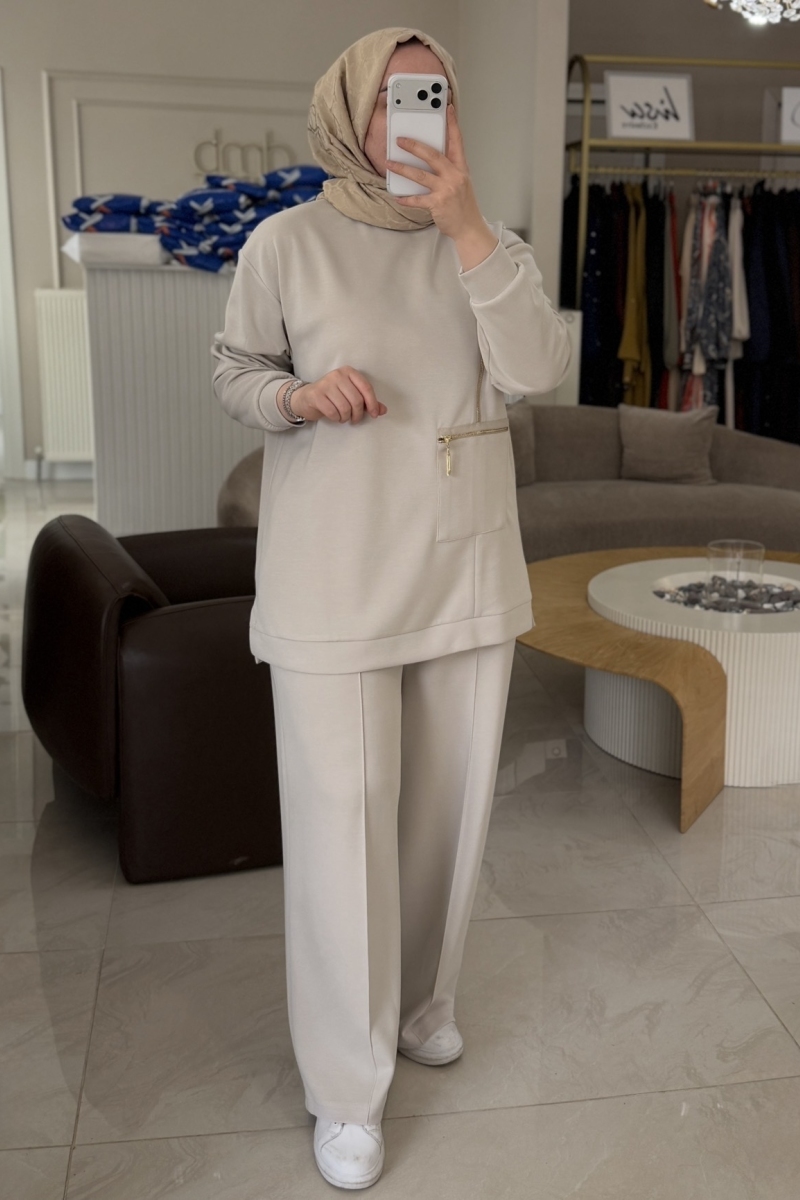 Nuss Taş Fermuar Ve Cep Detay Takım