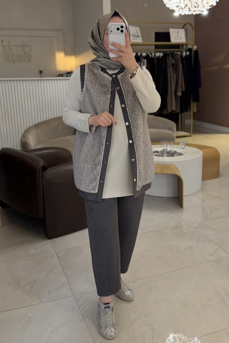 Gri SAÇ ÖRGÜLÜ KÜRK CEKET