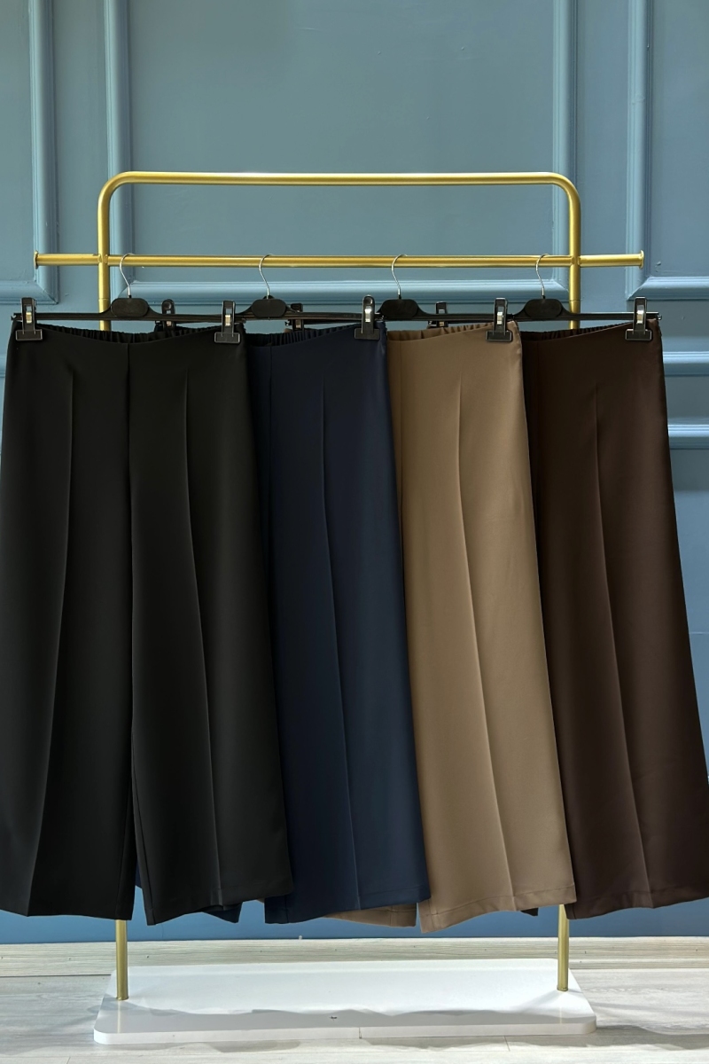 Sentez Grup Vizon Arkası Lastik Kısa Geniş Paça Pantolon